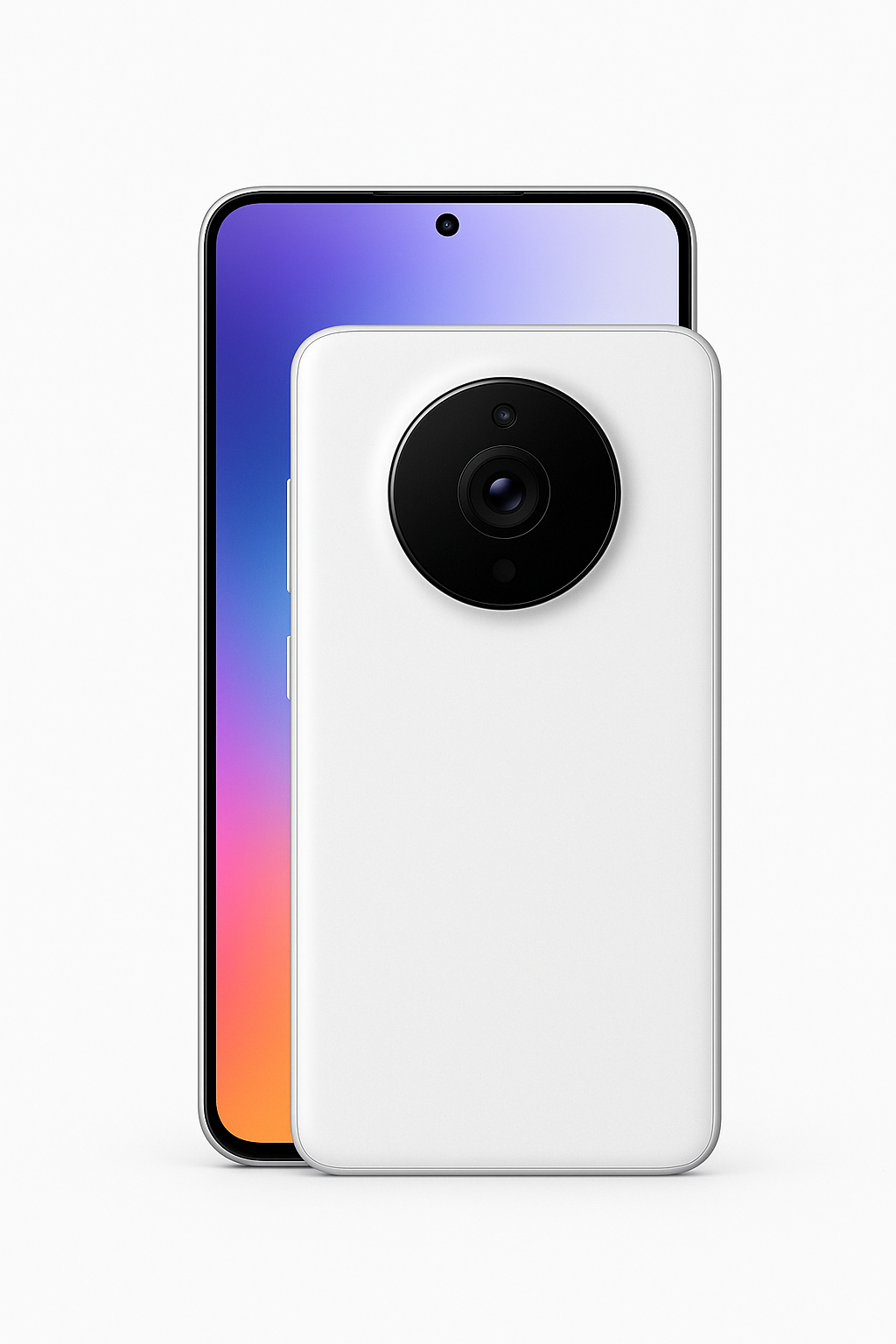 Weißes Design-Statement mit großem Kameraring – kompakt in der Hand, groß im Bild.